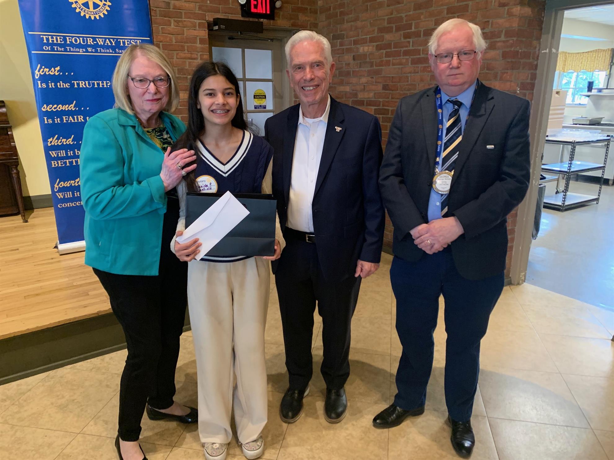 Nena Perkins, coordinator of the 21-WFMJ Regional Spelling Bee, then introduced Daniela Pappalardo of Canfield Village Middle School. Pappalardo, a 7th grader, won the regional bee in March and will compete in the Scripps National Spelling Bee in May in Washington, D.C. She received a cash gift from the club.