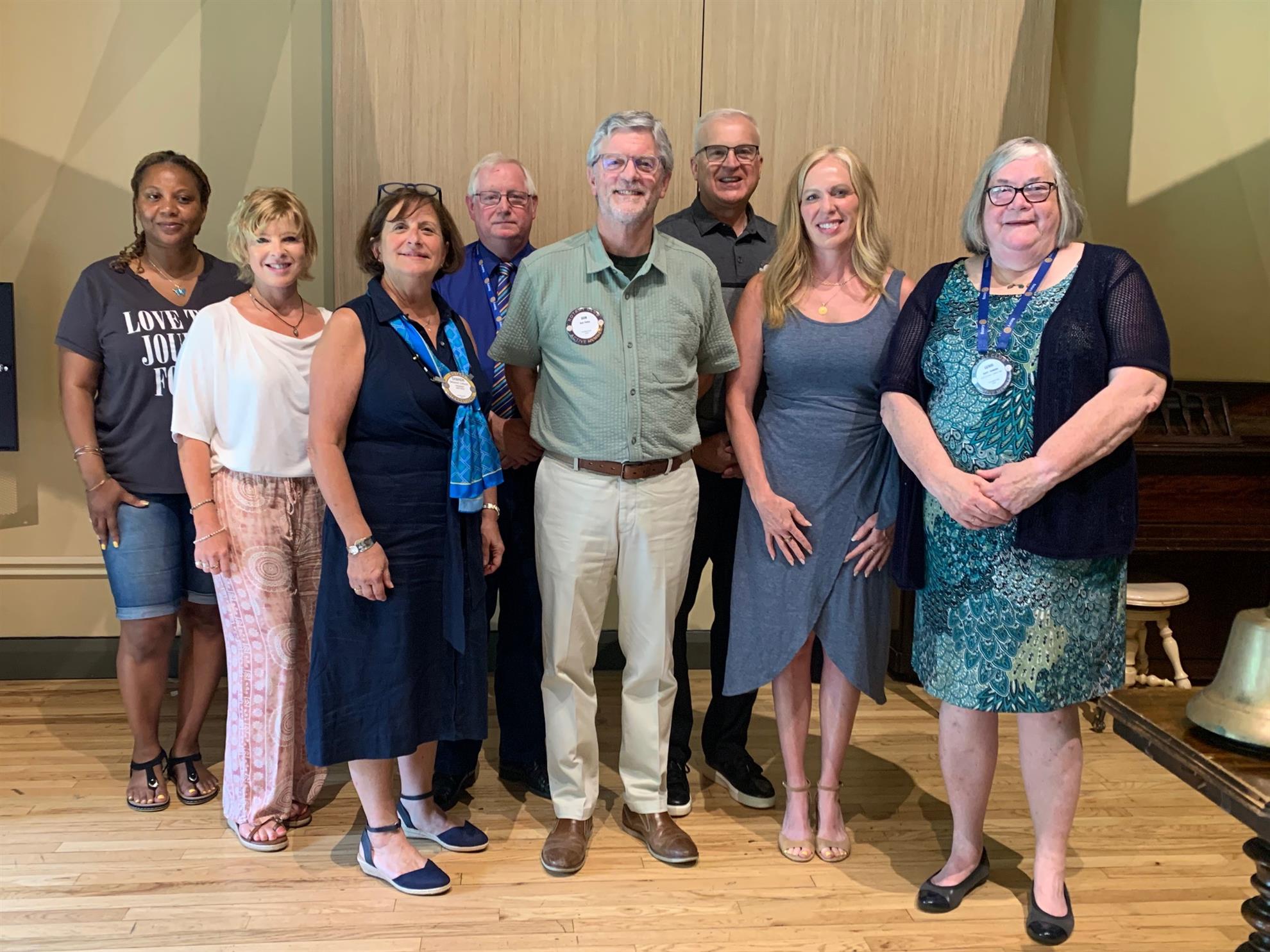 Presiding at her first meeting on July 16, Gerri introduced the Board of Directors, who are: President-Elect Ellie Platt; Vice President Don Foley; Secretary Troy Rhoades; Treasurer Dominick Brown; Past President George Nelson; Sharon Letson, the club’s Rotary International Foundation chair; Stacia Erdos; Dionne Dowdy; Kevin Chiu; and Jessica Romeo.