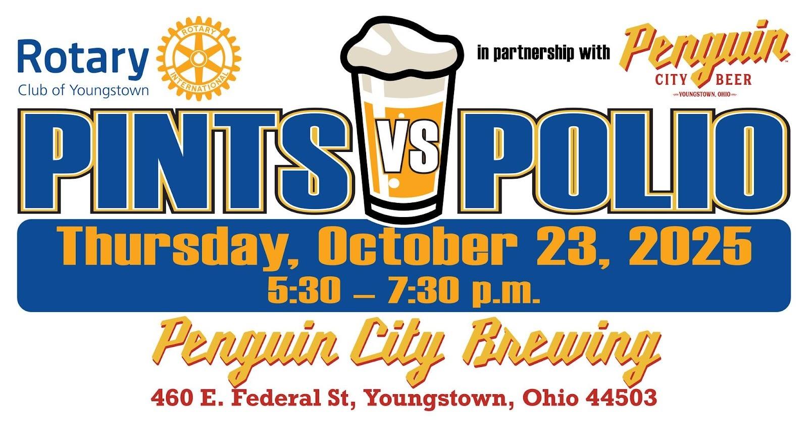 Pints Vs Polio Fundraiser with District 6650 Governor Kimberly Weiss, Oct. 23 at 5:30-7:30 p.m., Penguin City Beer, 460 E. Federal St.