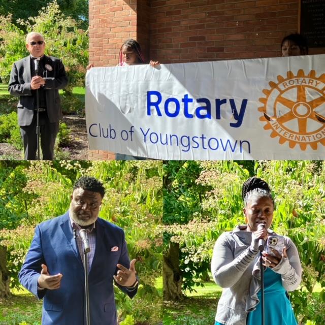 Mayor Jamael Tito Brown thanked Youngstown Rotarians for their contributions to the community, especially at Wick Park Pavilion and the Pollinator Garden. “Peace is not just an adjective—it’s an action,” he said. “We must talk about peace, treat others as we wish to be treated, and come together as a nation.”