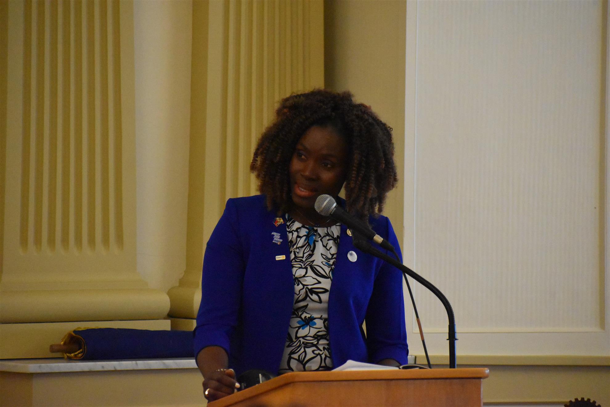 Keynote speaker Miquette McMahon, founder and executive director of Teach Haiti, shared the inspiring story of her own journey and her organization’s efforts to help educate youth in her homeland. Attendees also were entertained by magician Michael Dustman, who called up Youngstown Rotarian and future district governor Dave Stillwagon to participate in one of his tricks.