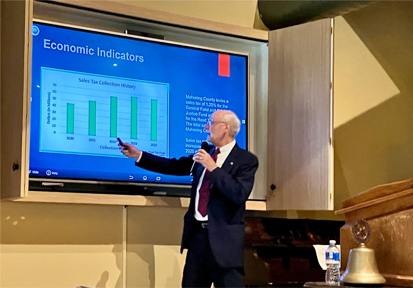 With efforts currently underway to push for property tax elimination, there is a strong possibility this issue could make its way to the ballots as early as November. Mahoning County Auditor Ralph Meacham provided an in-depth look at what the potential eradication of property taxes could mean for residents of Mahoning County. His presentation highlighted our existing reliance on Property taxes and challenges the impact losing this revenue will have to our community.