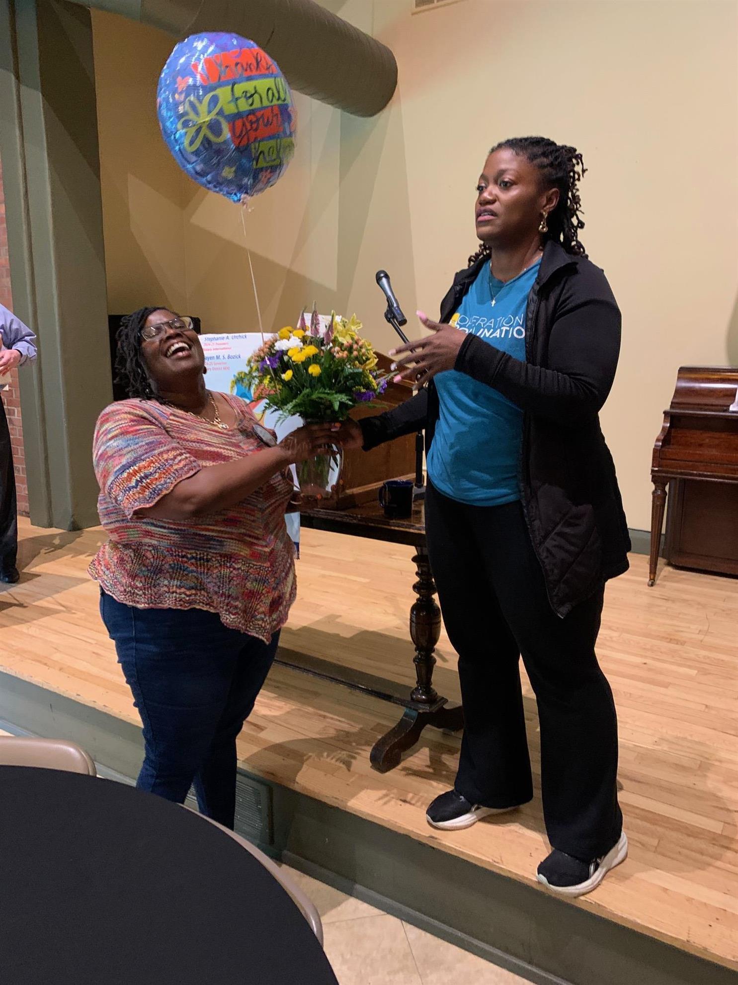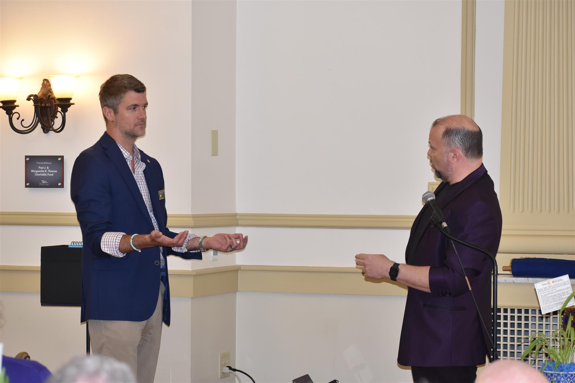 Keynote speaker Miquette McMahon, founder and executive director of Teach Haiti, shared the inspiring story of her own journey and her organization’s efforts to help educate youth in her homeland. Attendees also were entertained by magician Michael Dustman, who called up Youngstown Rotarian and future district governor Dave Stillwagon to participate in one of his tricks.