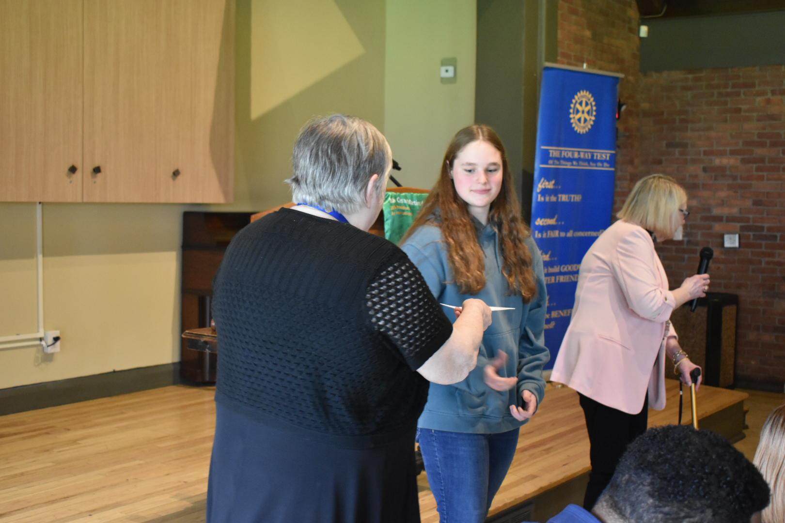 We also congratulated Genevieve Ramey, an eighth grader from Lincoln PK-8 in Warren, on winning the WFMJ-TV Regional Spelling Bee and presented her with a cash award. She will represent our area at the 101st National Scripps Bee in Washington, D.C. during Memorial Day week.